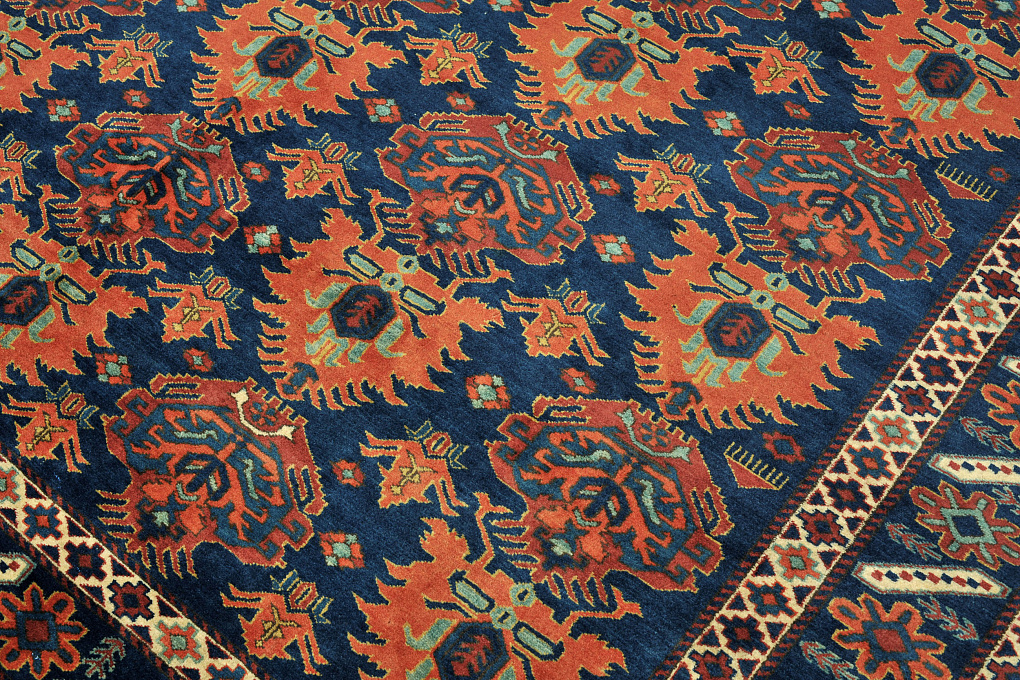 Данный ковер - полная репродукция антикварного ковра с соблюдением всех старинных технологий. Немногие специалисты смогу увидеть в нем новый ковер.