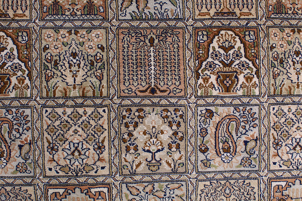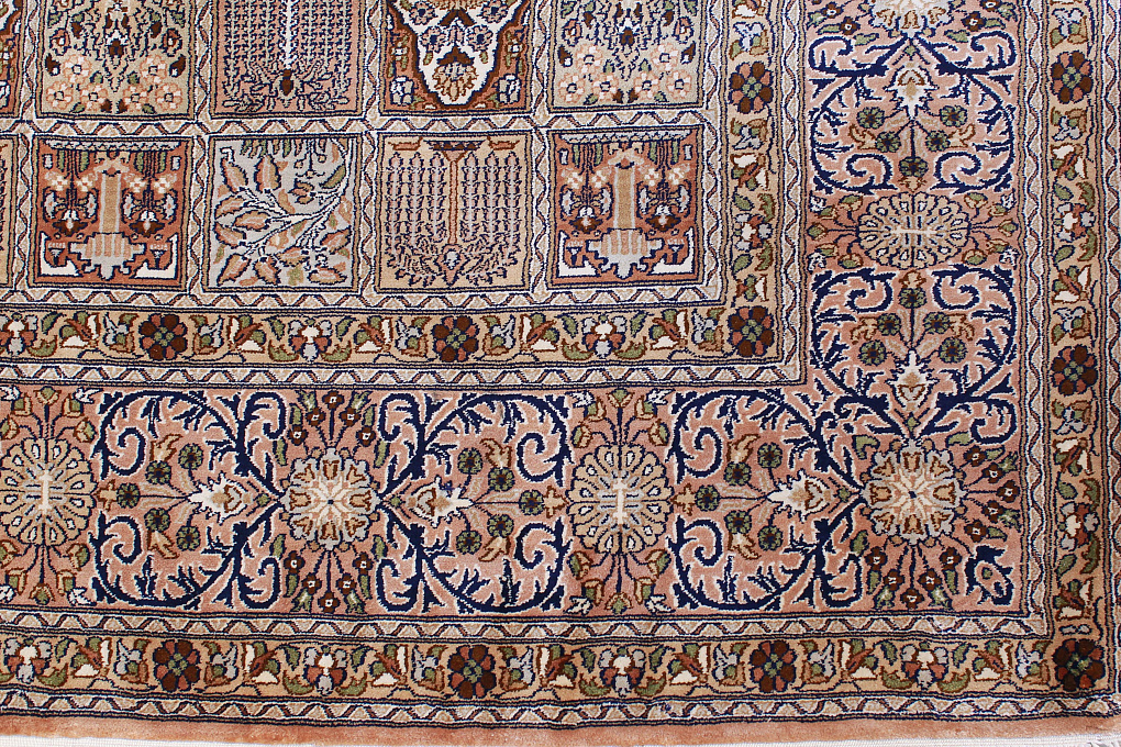 Кашмирские ковры ручной работы – это настоящие шедевры индийского ковроткачества. Выполненные из чистого шелка, они имеют мелкий и сложный орнамент, сдержанную цветовую палитру и многообразие различных дизайнов.