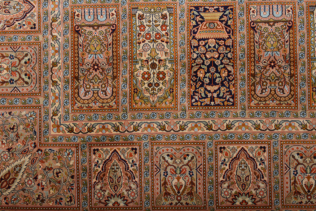 Кашмирские ковры ручной работы – это настоящие шедевры индийского ковроткачества. Выполненные из чистого шелка, они имеют мелкий и сложный орнамент, сдержанную цветовую палитру и многообразие различных дизайнов.