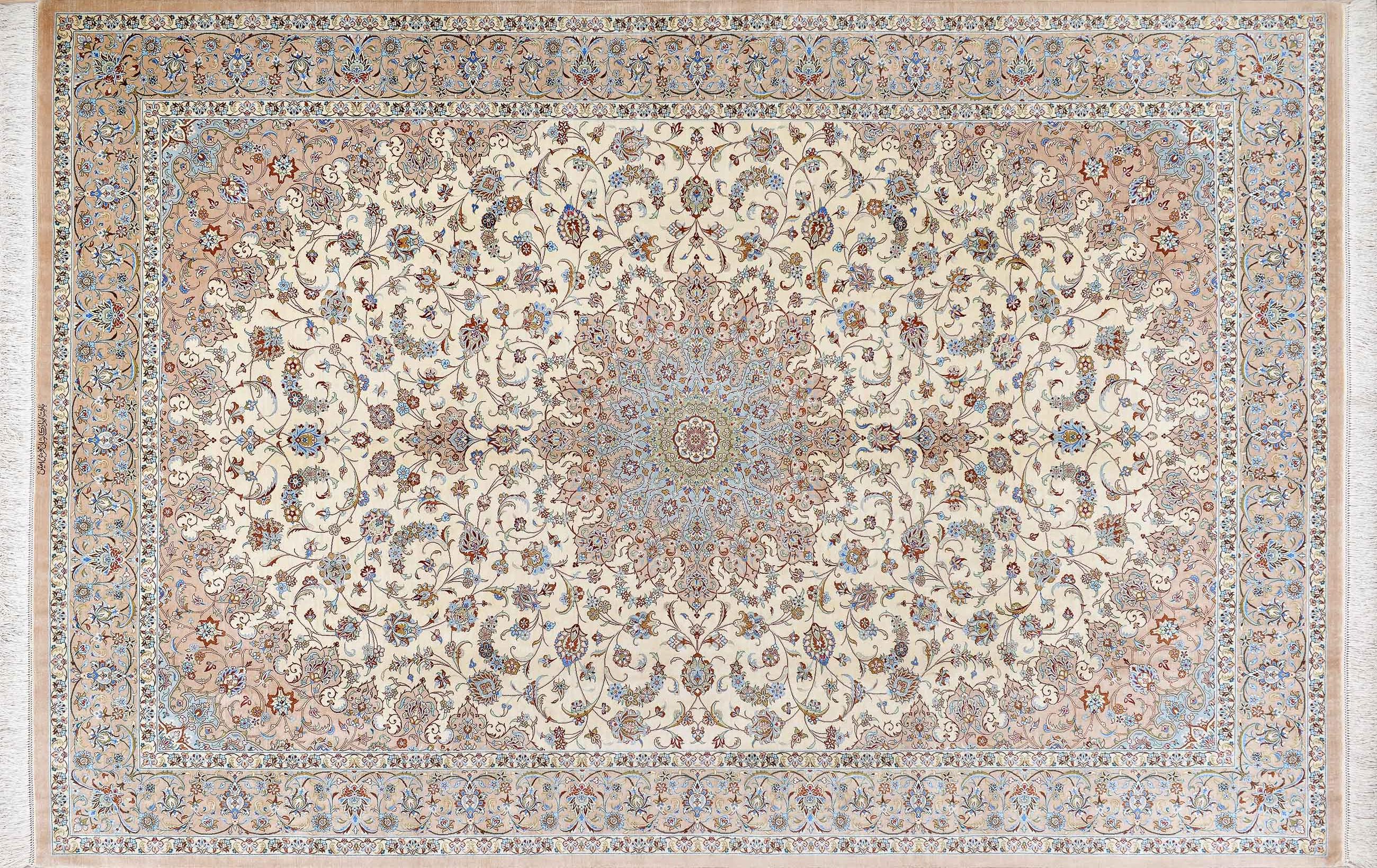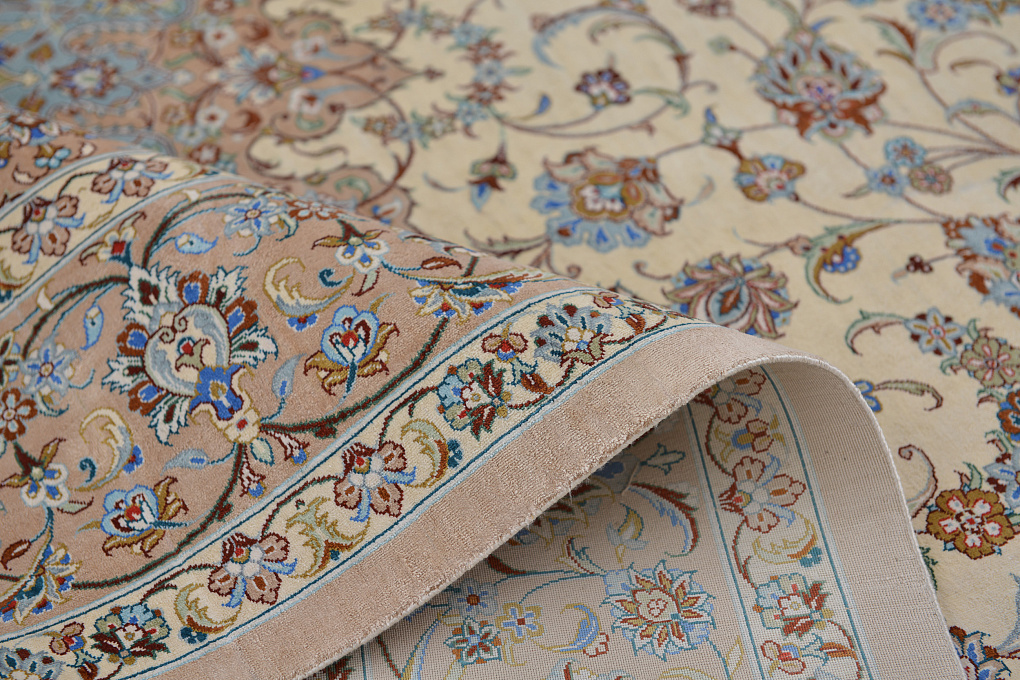 Шелковые ковры из города Кум считаются самыми изысканными произведениями ручного ковроткачества. Они отличаются большим количеством узелков на квадратный метр и филигранной, мелкой работой. Несмотря на обилие различных оттенков, персидские ковры из города Кум всегда смотрятся гармонично и роскошно.