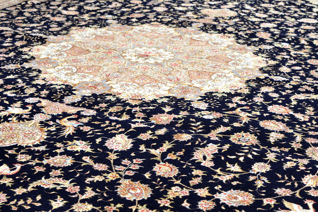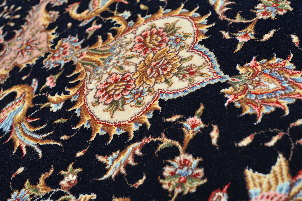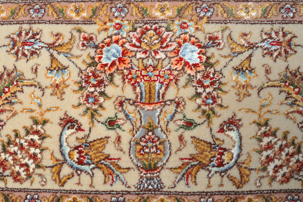 Ворс этих ковров сочетает в себе шелк и шерсть, что придает выразительность узору благодаря неповторимому шелковому блеску некоторых элементов узора.