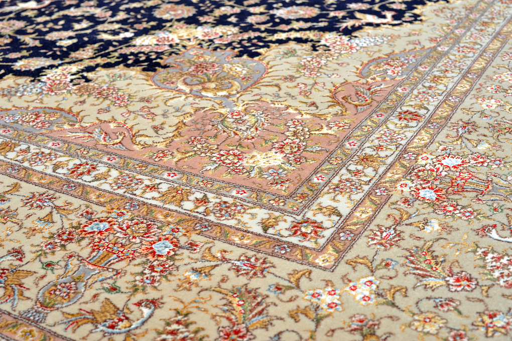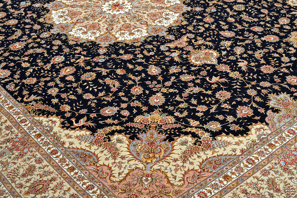 Персидский ковер ручной работы Табриз. Изготовлен лучшими мастерами одноименного города. Сочетание теплых оттенков всегда добавляет уют и роскошь в классический интерьер. А мелкий орнамент подчеркивает тонкость работы.