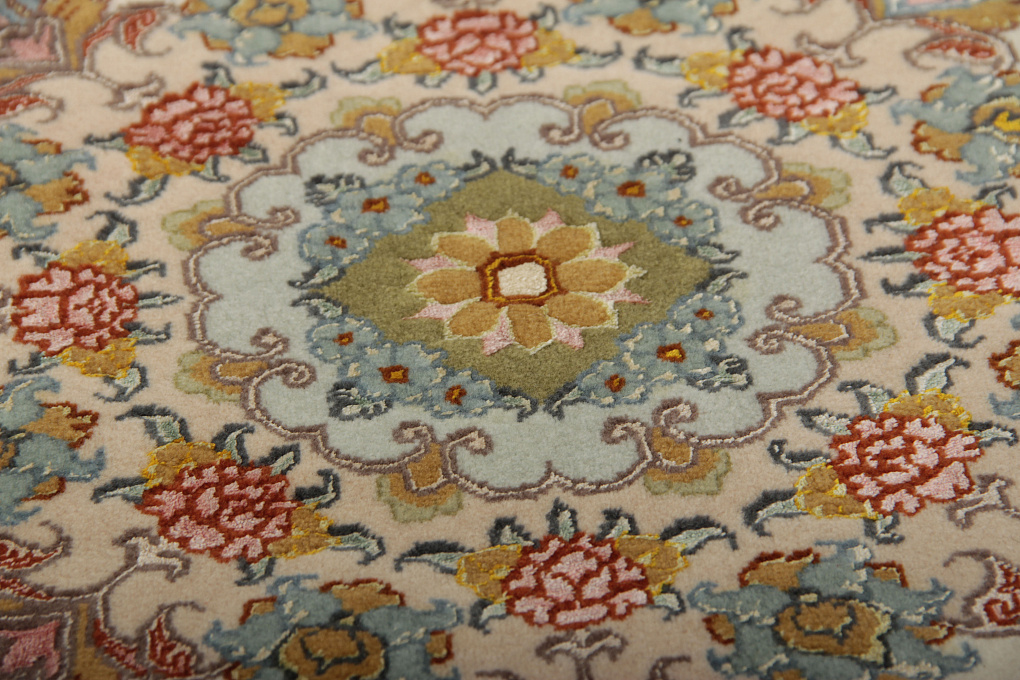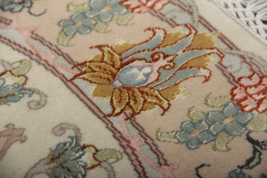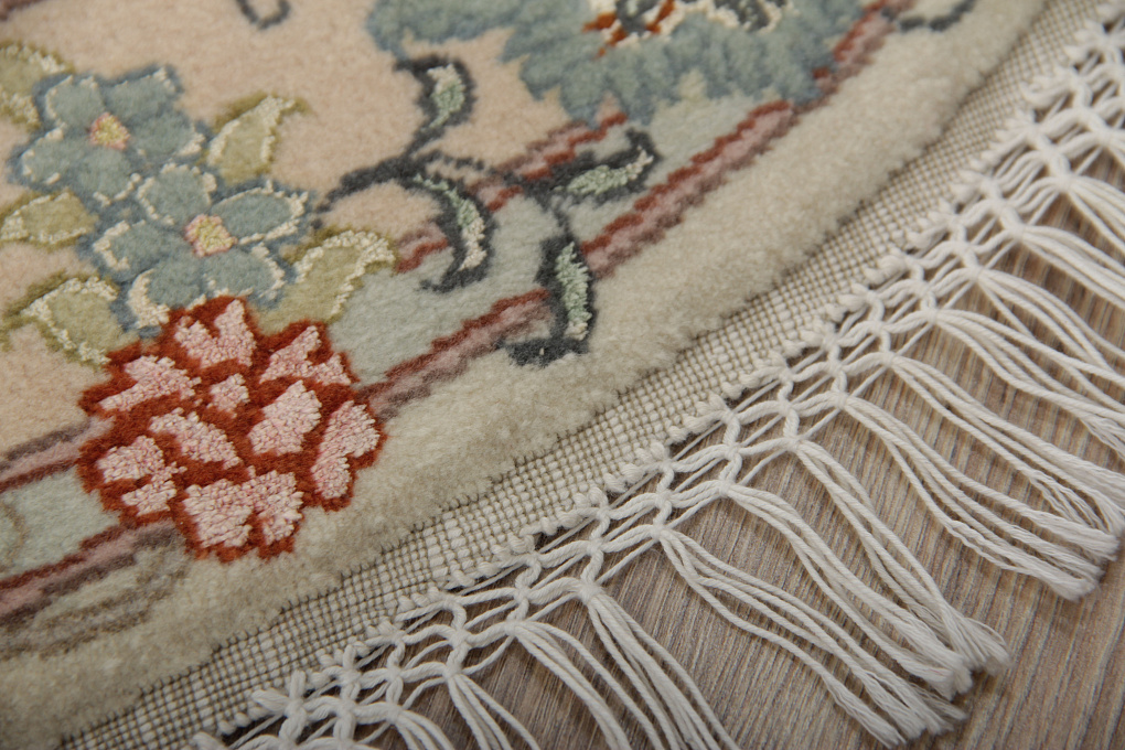 Ворс этих ковров сочетает в себе шелк и шерсть, что придает выразительность узору благодаря неповторимому шелковому блеску некоторых элементов узора.