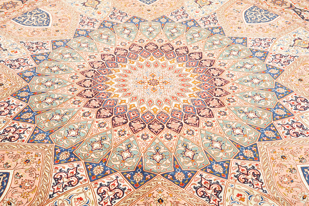 Круглый иранский ковер ручной работы, сотканный в городе Табриз.