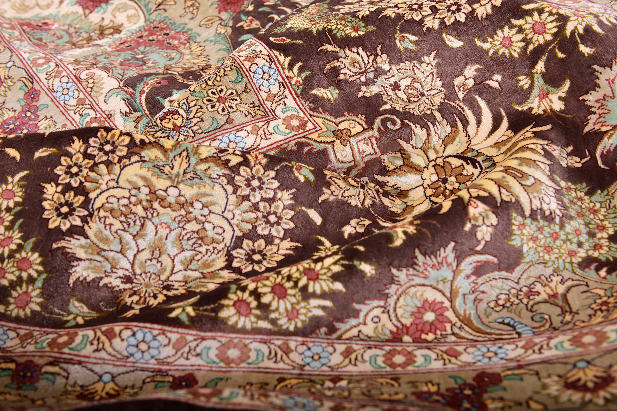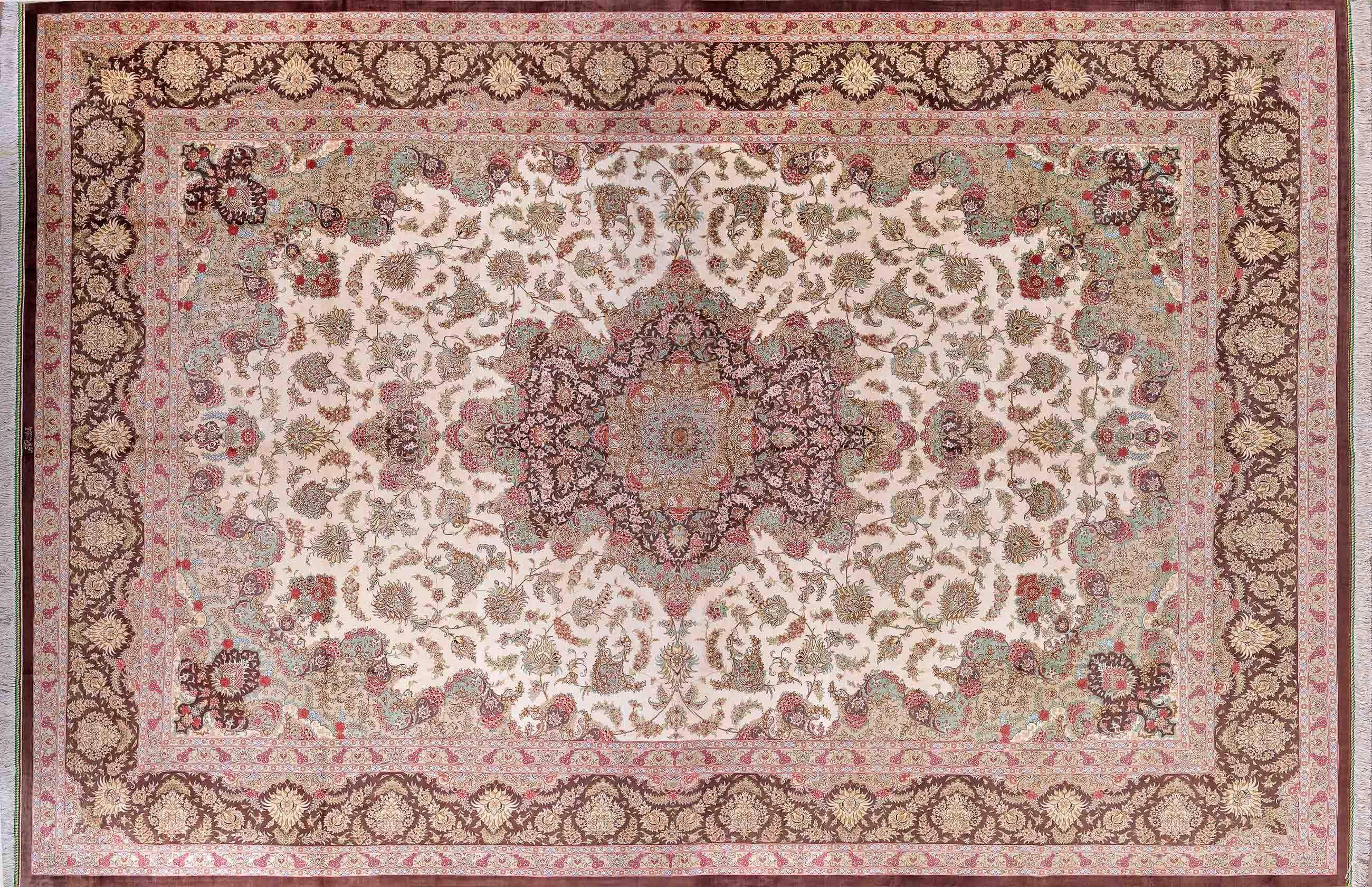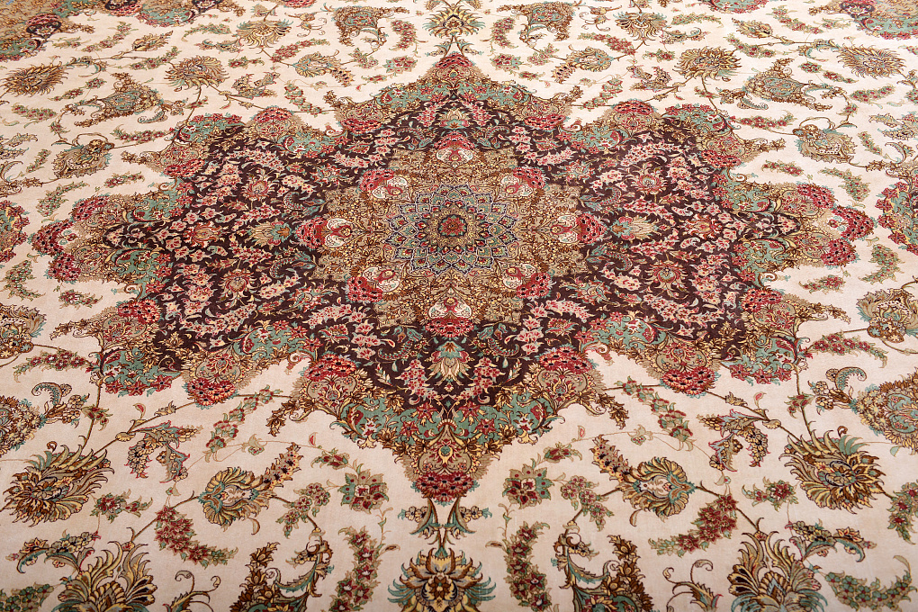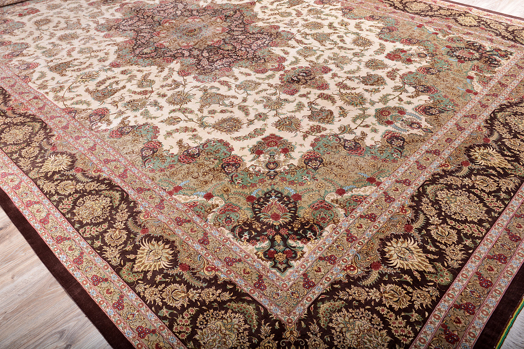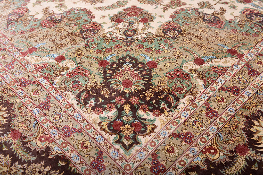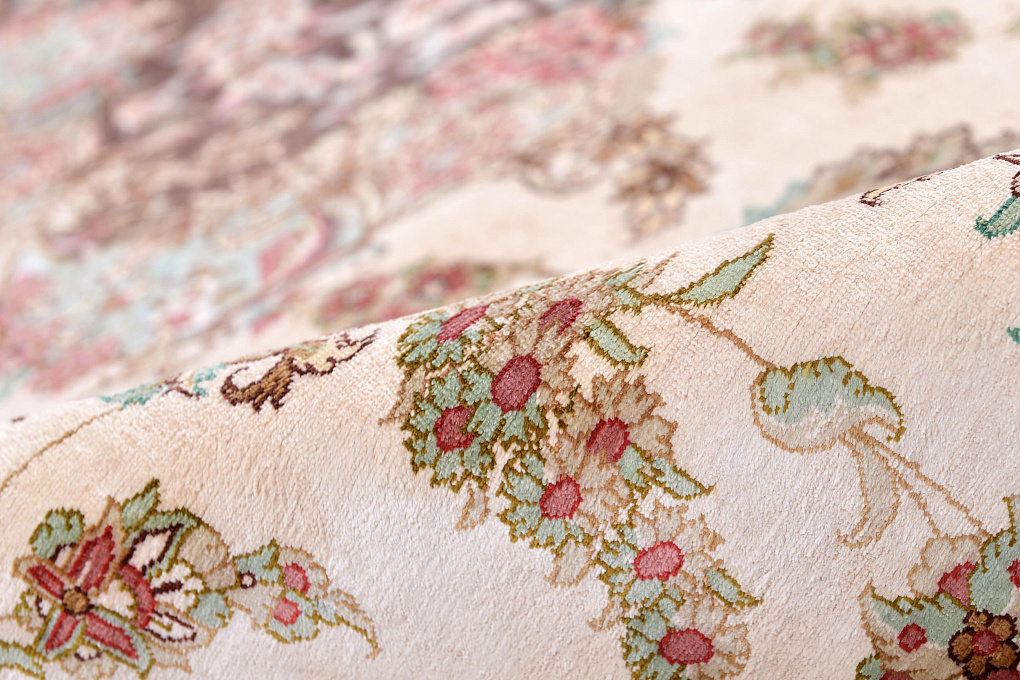 Шелковые ковры из города Кум считаются самыми изысканными произведениями ручного ковроткачества. Они отличаются большим количеством узелков на квадратный метр и филигранной, мелкой работой. Несмотря на обилие различных оттенков, персидские ковры из города Кум всегда смотрятся гармонично и роскошно.