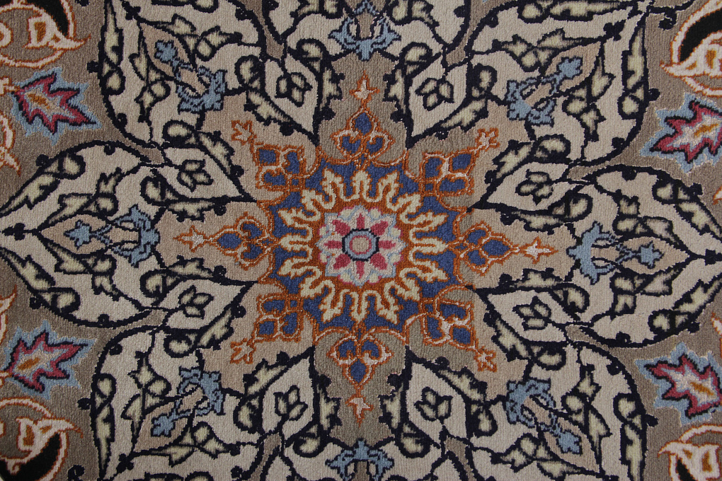 Ворс этих ковров сочетает в себе шелк и шерсть, что придает выразительность узору благодаря неповторимому шелковому блеску некоторых элементов узора.