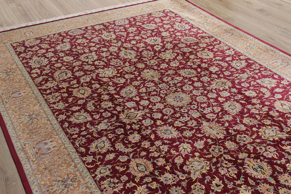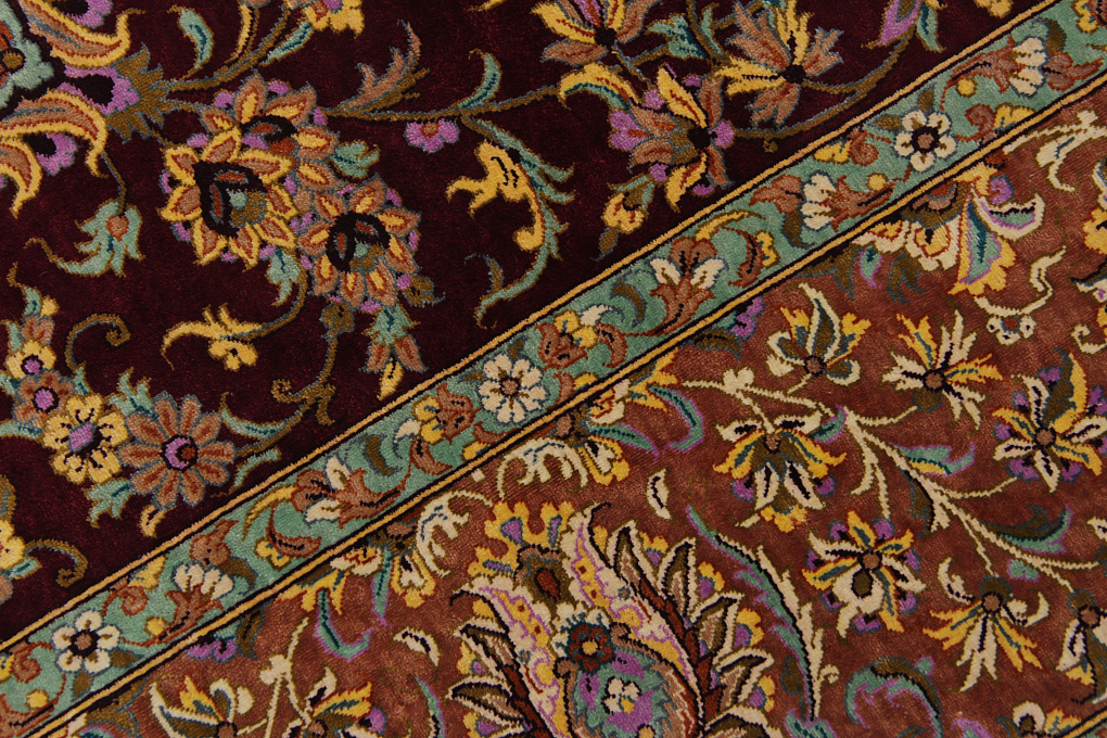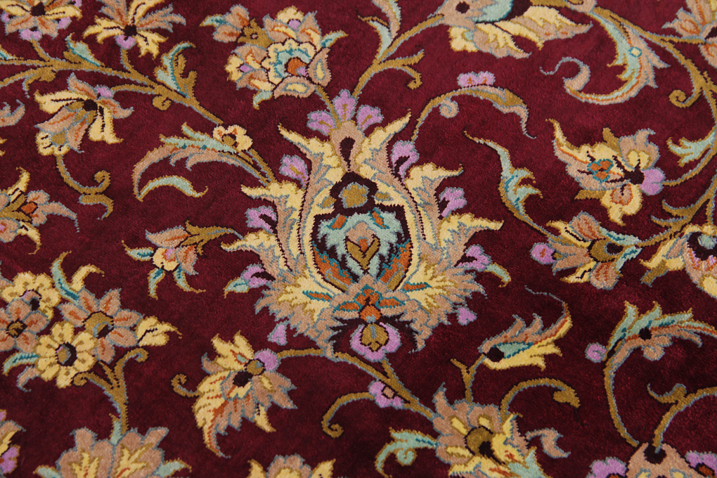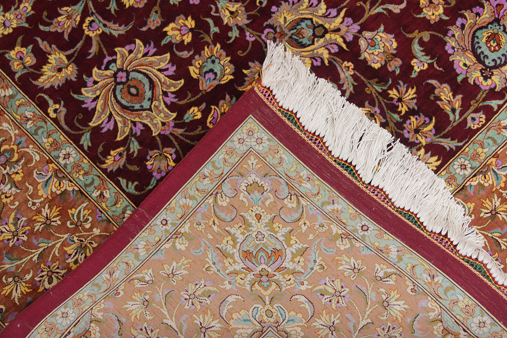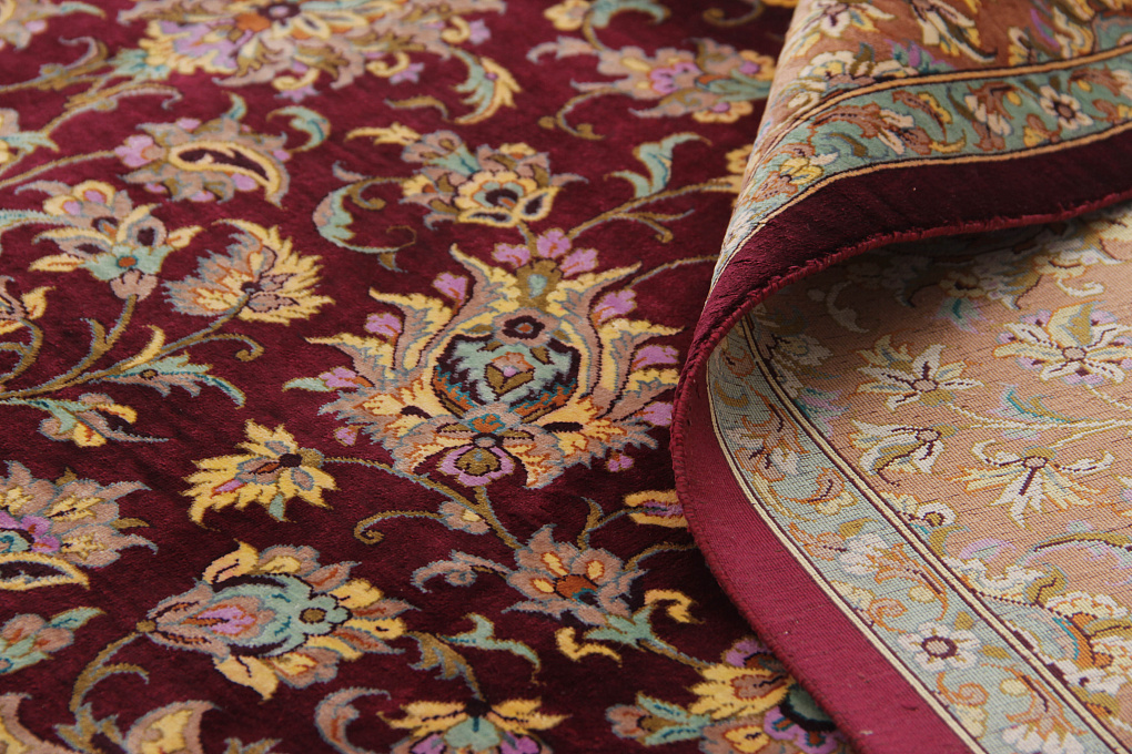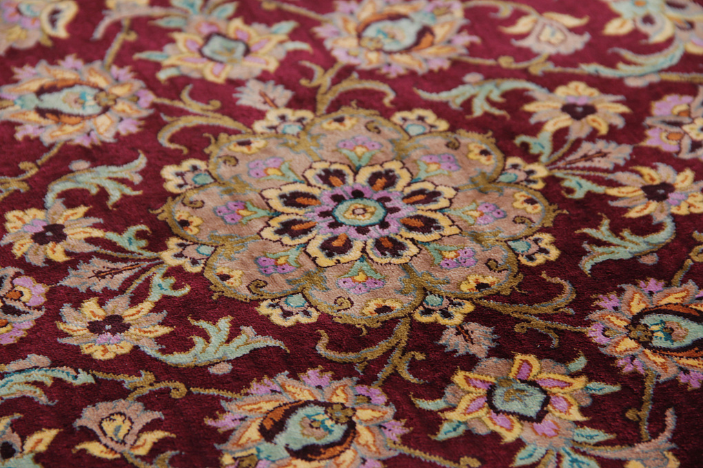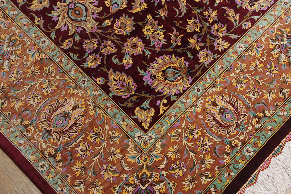 Шелковые ковры из города Кум считаются самыми изысканными произведениями ручного ковроткачества. Они отличаются большим количеством узелков на квадратный метр и филигранной, мелкой работой. Несмотря на обилие различных оттенков, персидские ковры из города Кум всегда смотрятся гармонично и роскошно.