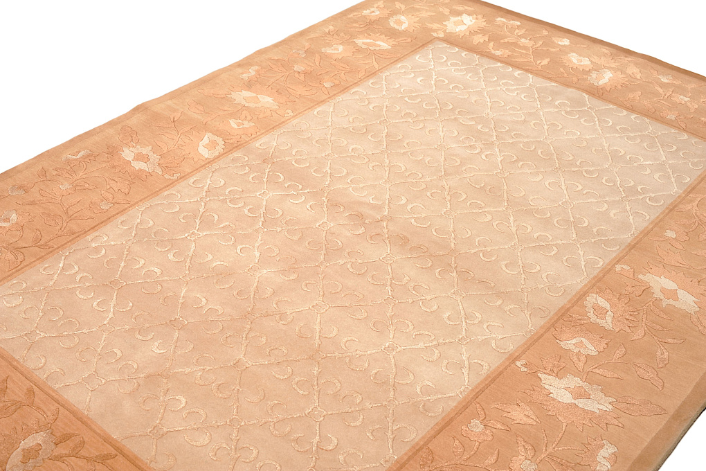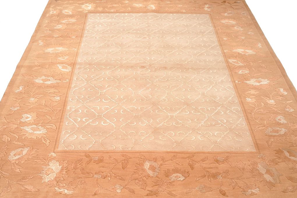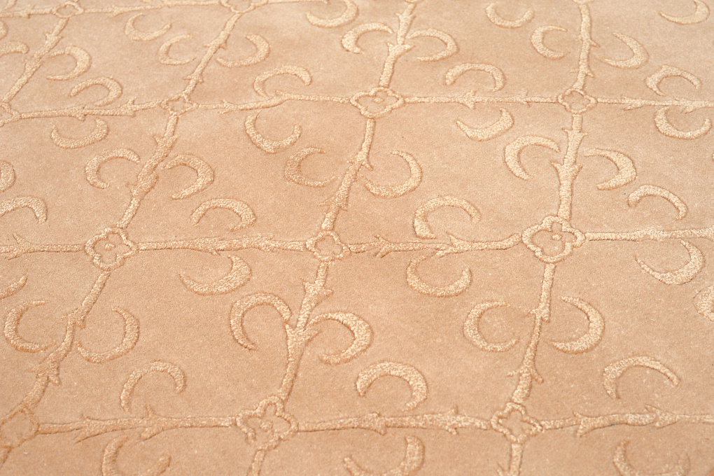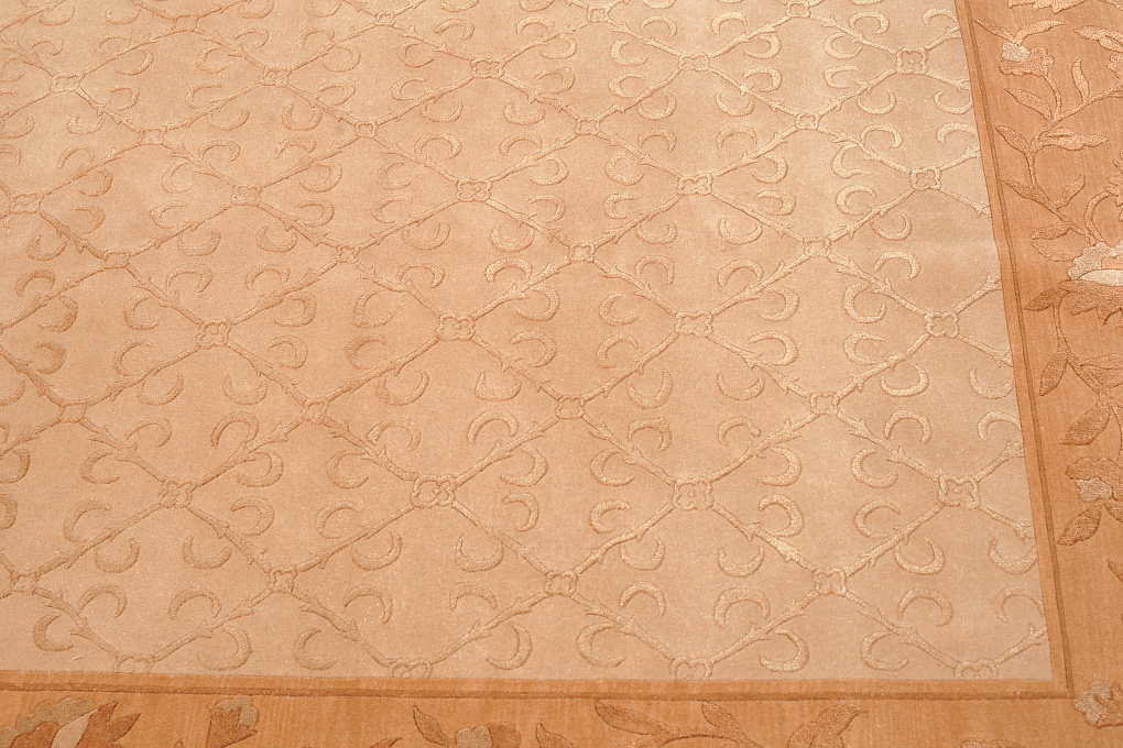 Тибетский ковер ручной работы с авторским дизайном. Для изготовления ковра использована особая шерсть горного яка. Добавление шелка, придает поверхности изделия легкое мерцание.