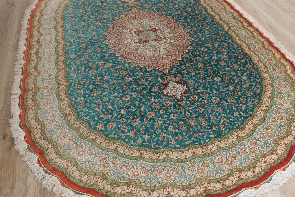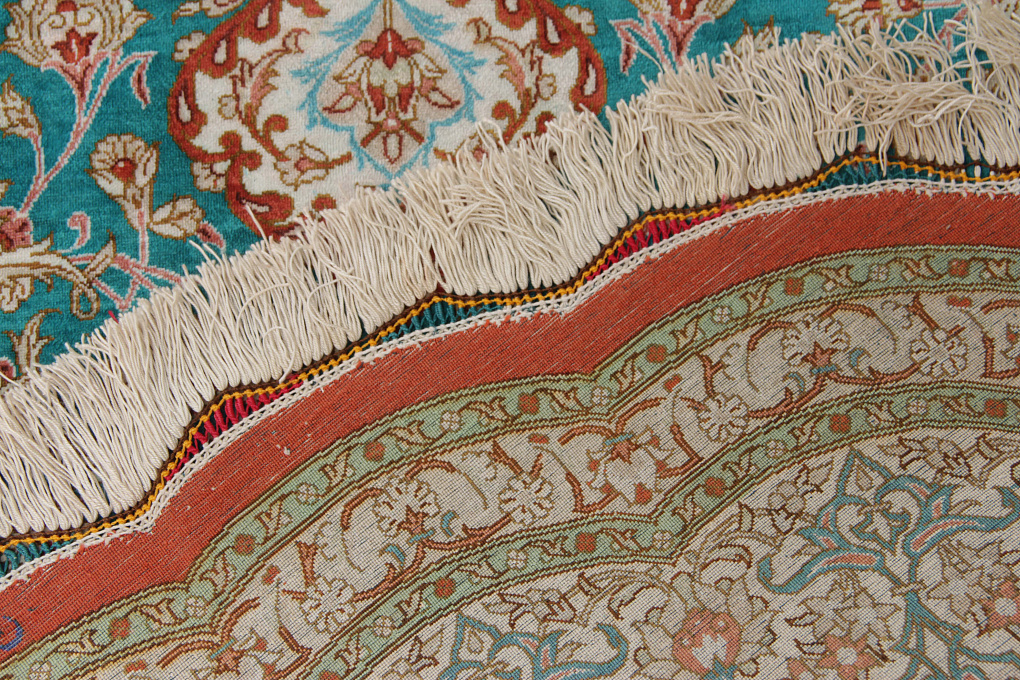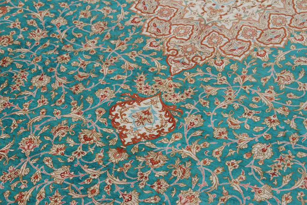 Шелковые ковры из города Кум считаются самыми изысканными произведениями ручного ковроткачества. Они отличаются большим количеством узелков на квадратный метр и филигранной, мелкой работой. Несмотря на обилие различных оттенков, персидские ковры из города Кум всегда смотрятся гармонично и роскошно.